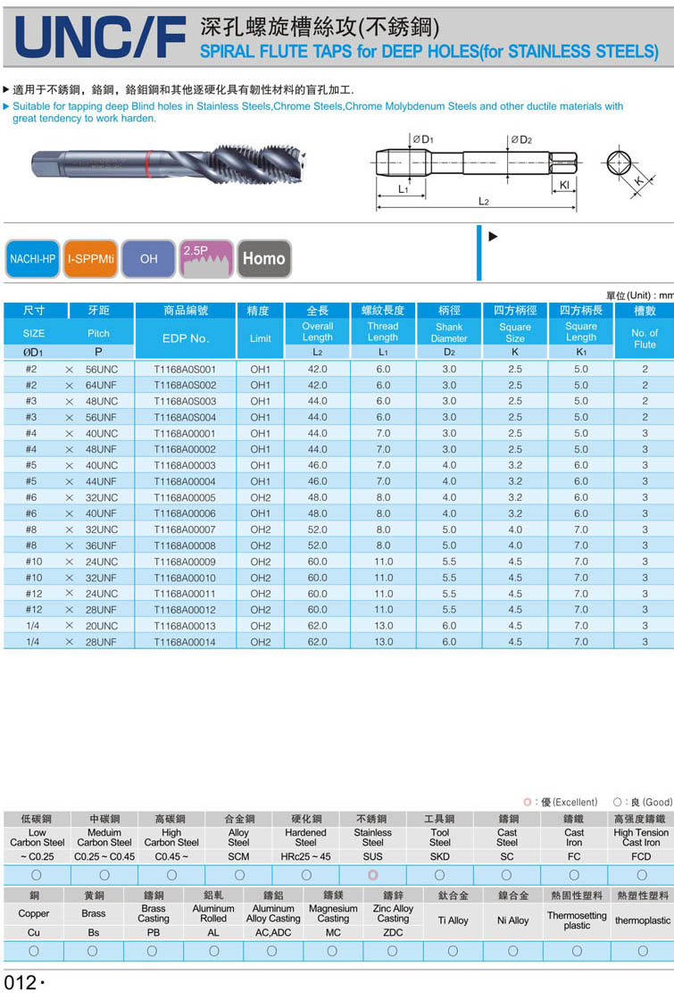 2. 美制螺旋鋼件絲攻006