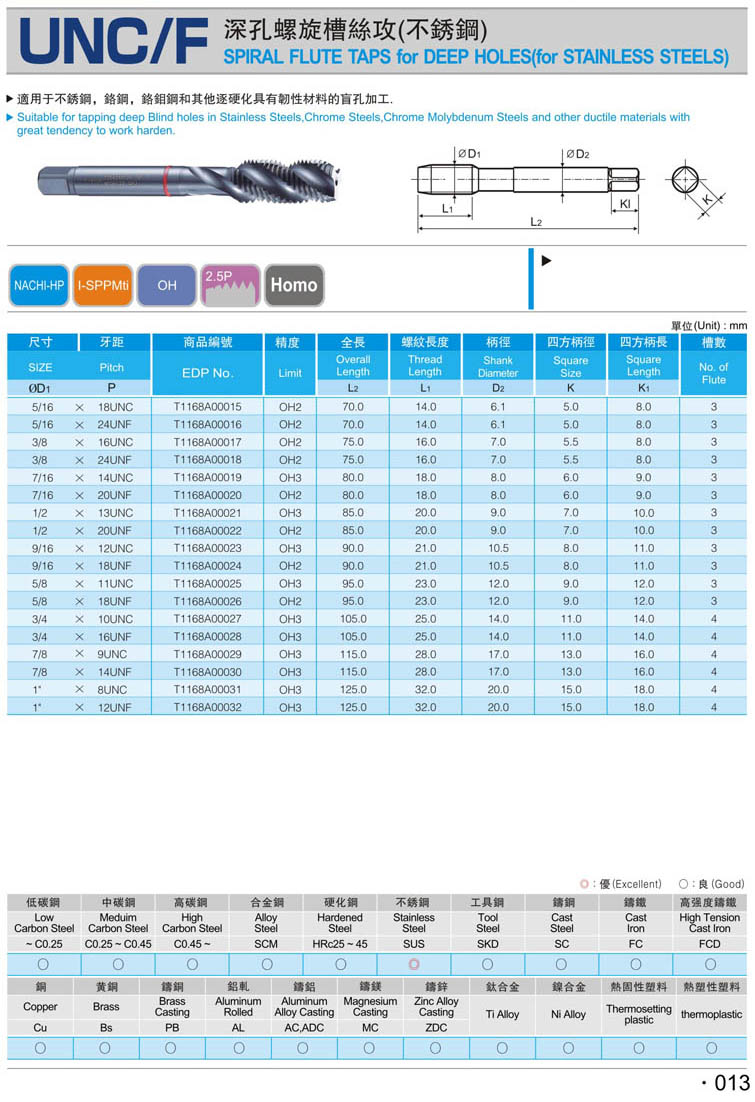 13. 英制先端鋼件絲攻025
