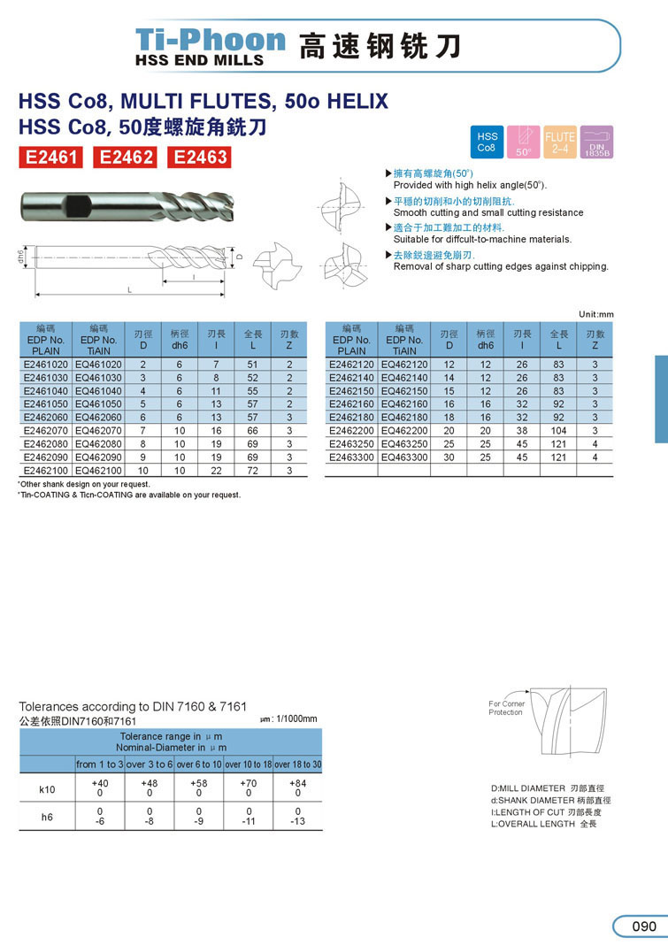 3刃鋁合金白鋼立銑刀090