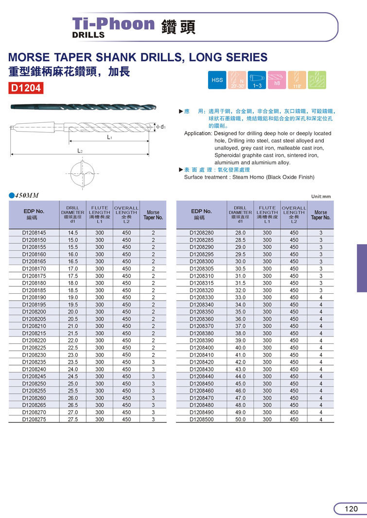 HSS加長斜柄鑽頭118