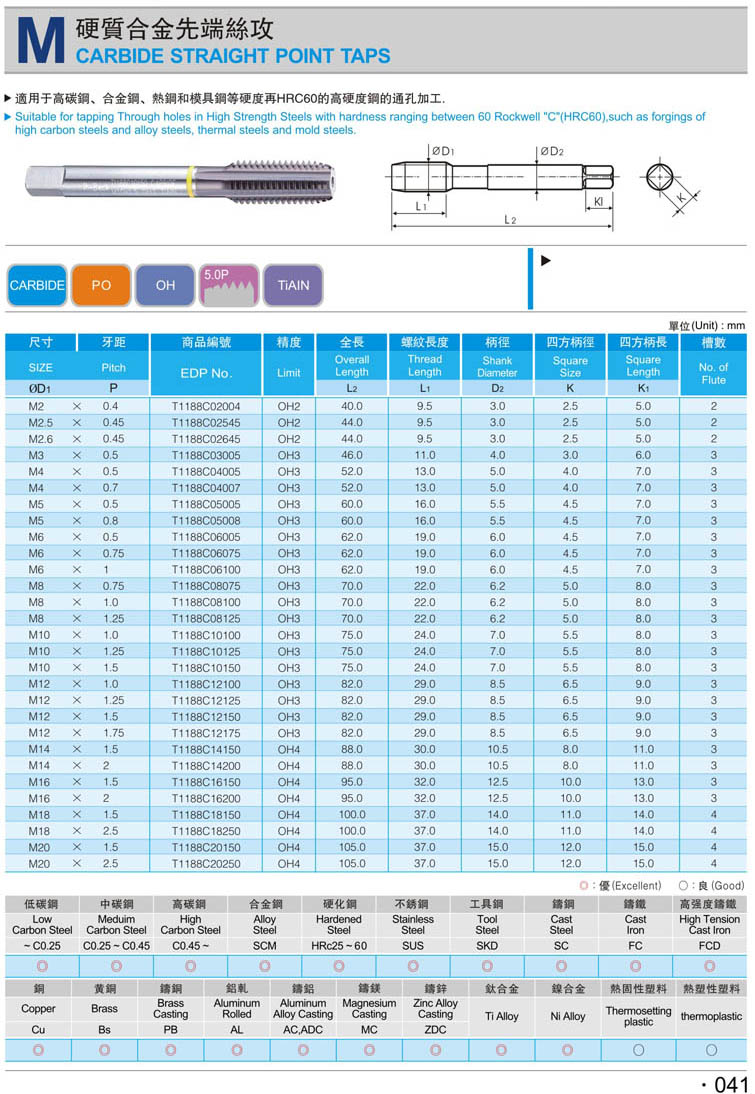 24. 公制螺紋護(hù)套絲攻(螺旋型) 042