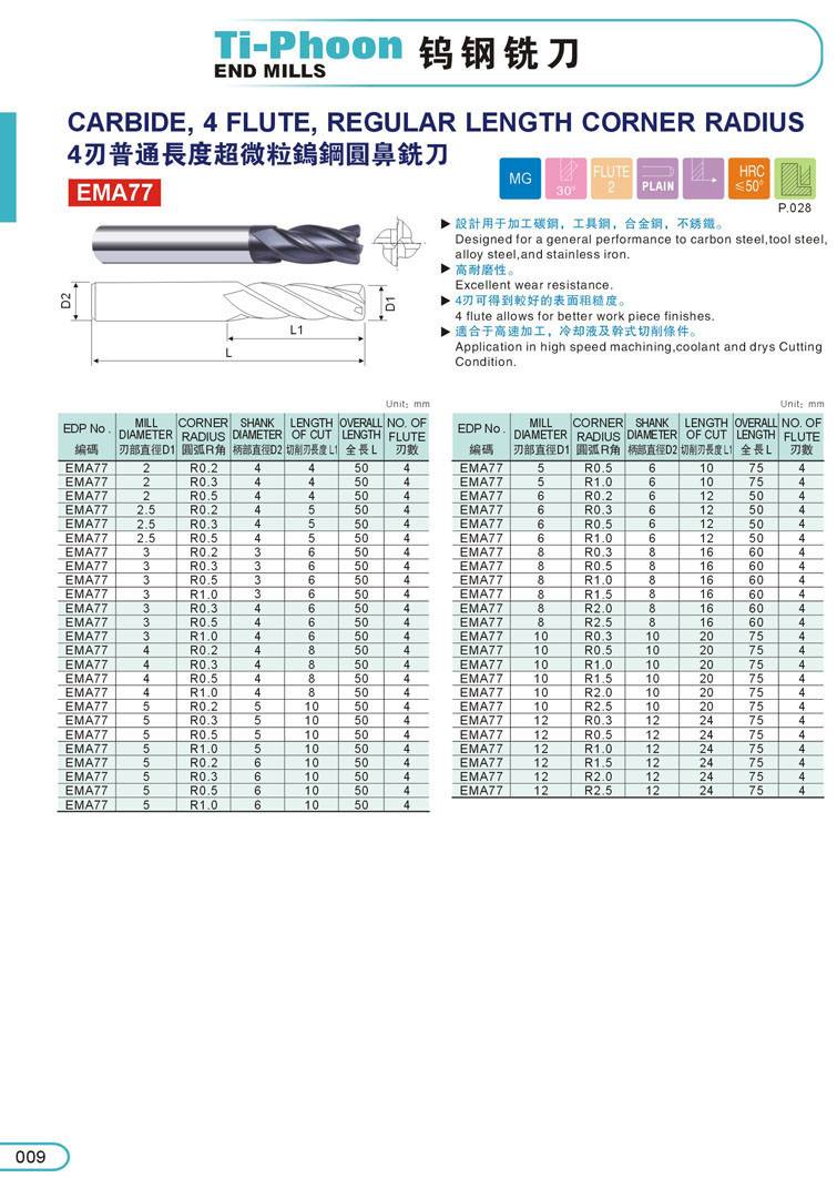 4刃超微粒圓鼻鎢鋼立銑刀009