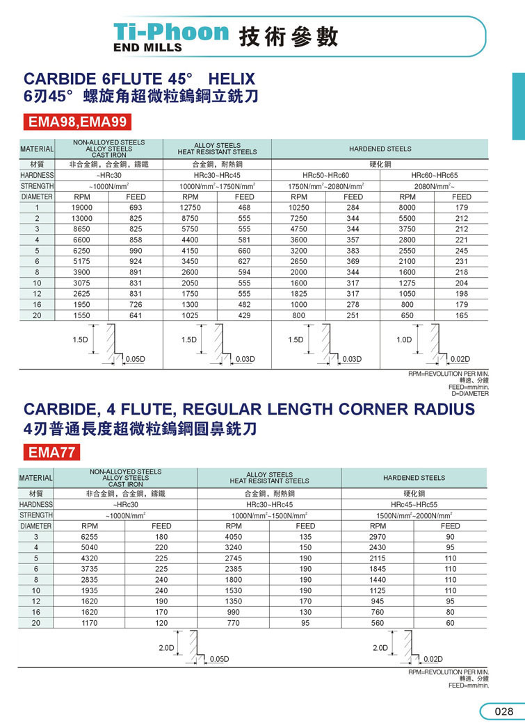 16. 4刃超微粒鎢鋼斜度立銑刀024