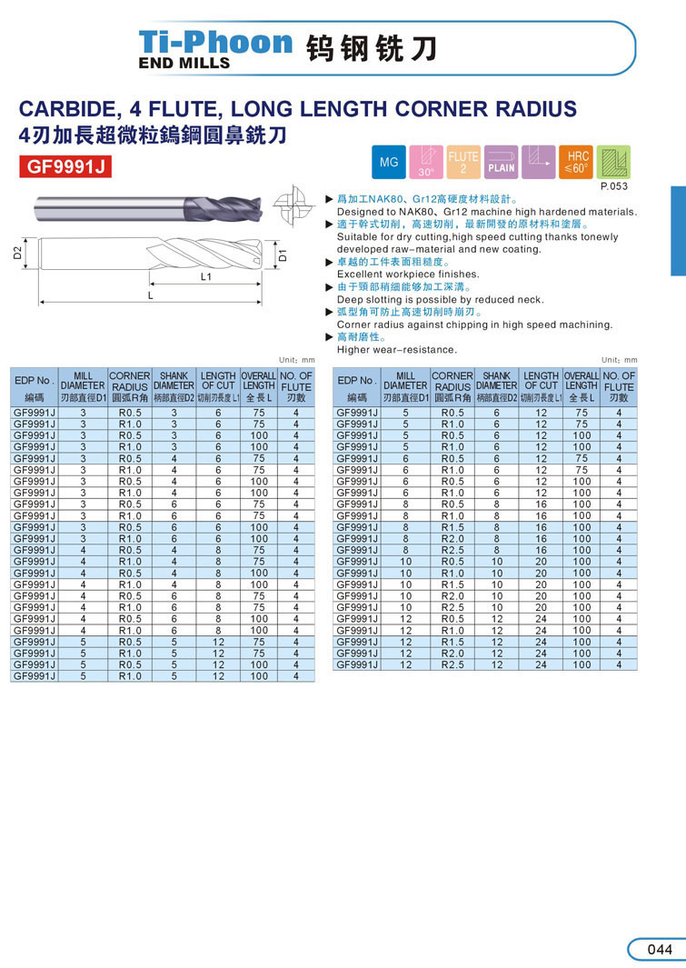 10. 4刃加長超微粒圓鼻鎢鋼立銑刀044