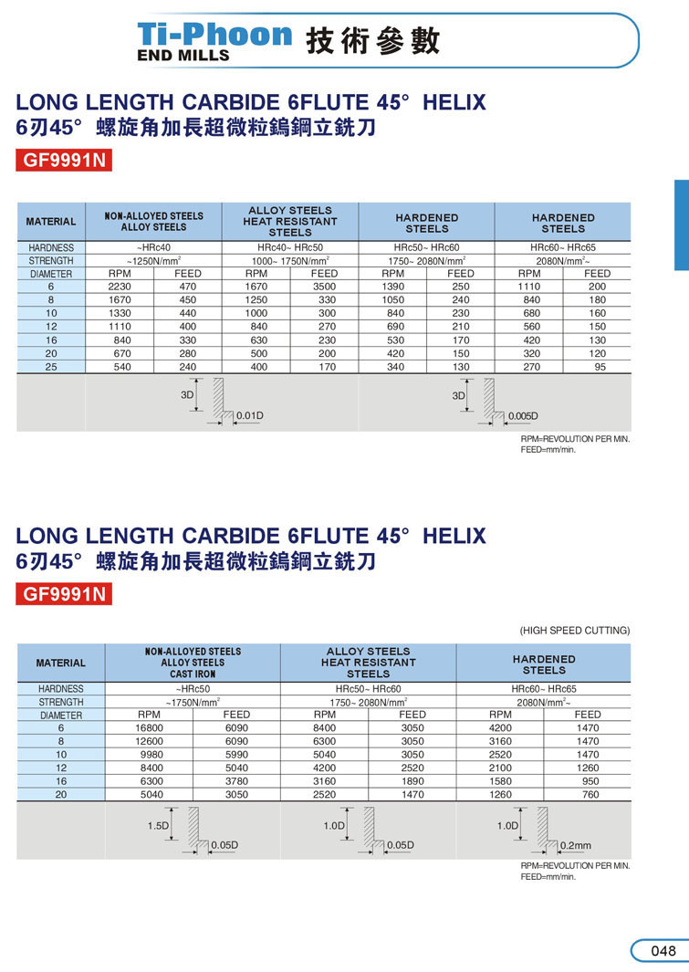 11. 2刃超微粒鎢鋼深溝立銑刀045