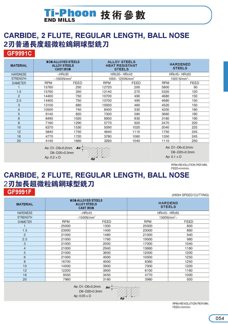 6. 2刃加長球型超微粒鎢鋼立銑刀040