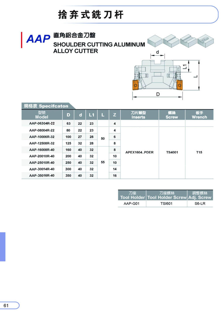 (1)可調式鋁合金刀盤AP90度