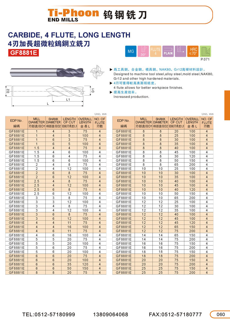 4. 4刃加長超微粒鎢鋼立銑刀060